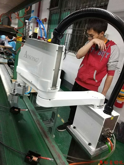2. 流水线上灌胶,当产品流到一定的位置时,由信号对