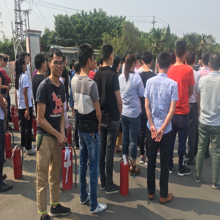 生产车间下午暂停生产,全体参加安全生产培训及安全消防演习,如下图: