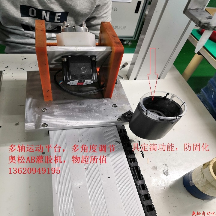 AB灌胶机 是深圳奥松自动化流体设备的热销产品,其定义是专门对流体AB胶双组份进行控制,并将液体点滴、灌封、涂覆于产品内部或产品表面的自动化设备,采用高精度计量泵供料,奥松自主研发专利软件,具有多种防呆功能,机器自动完成定量灌注,胶量准确,均匀,无大头拉丝现象,解决了人工灌封造成每个产品胶量不一致而影响工艺的现象。